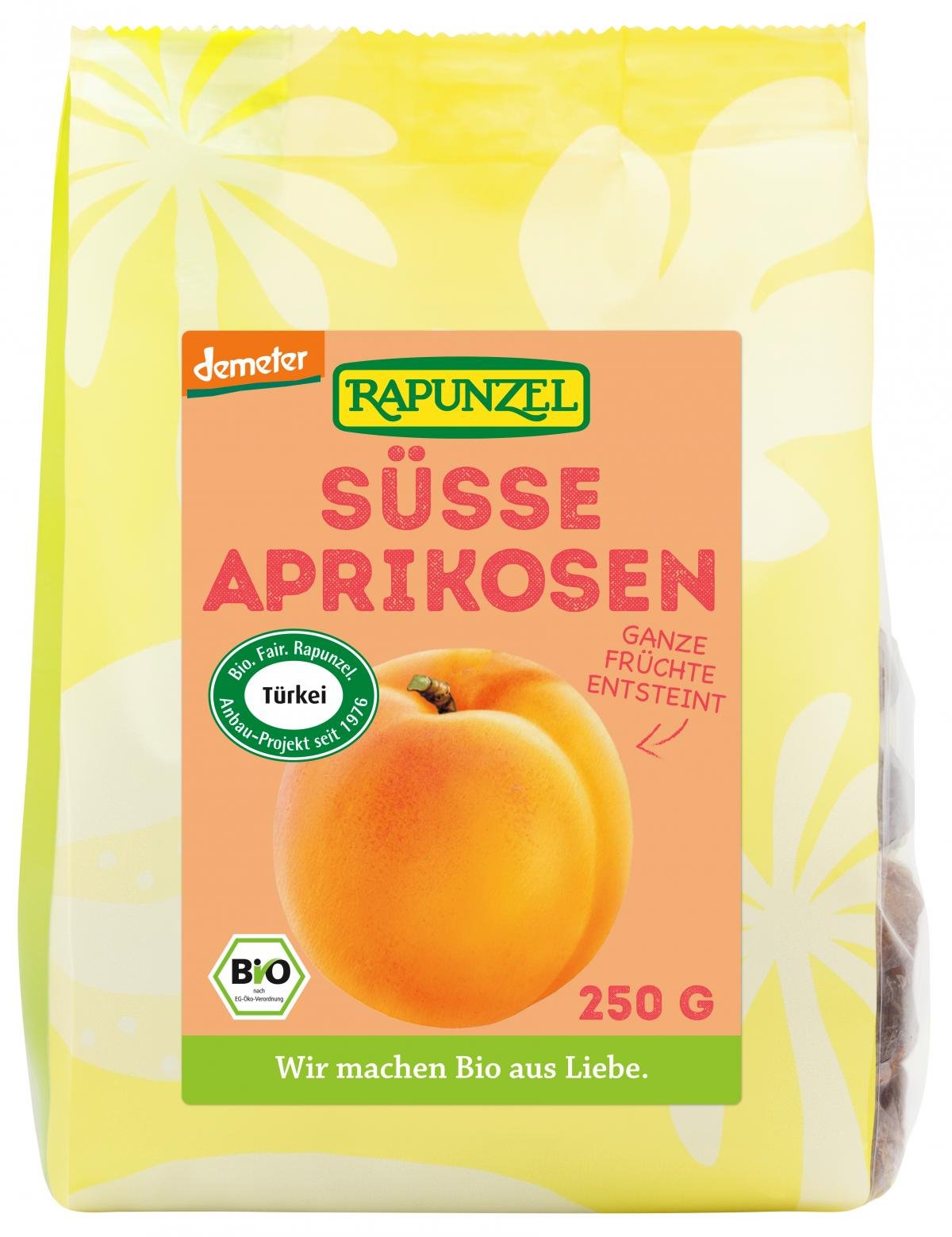 Sonnengereifte, herrlich fruchtig-süße demeter Aprikosen aus dem Rapunzel Türkei-Projekt. Die Früchte werden in der hügeligen Region Malatya in Ostanatolien kultiviert, geerntet und in der Sonne getrocknet. So erhalten die Aprikosen ihr volles Aroma. Die natürliche orange-braune Farbe der getrockneten Früchte ist ein Qualitätsmerkmal für ungeschwefelte Aprikosen.