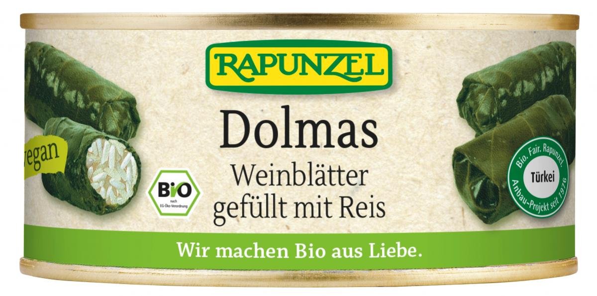 Saftig-frische Spezialität der orientalischen Küche - aus dem Rapunzel Türkei-Projekt. Besonders typisch für den östlichen Mittelmeerraum. Die zarten Weinblätter werden sorgfältig von Hand mit Reis und Gewürzen befüllt und in Olivenöl nativ extra eingelegt.