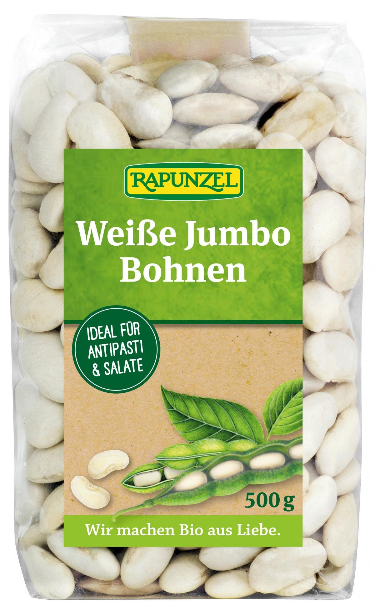 Die aromatischen und leicht süßlich schmeckenden Jumbo-Bohnen sind besonders dekorativ, schmackhaft und liefern reichlich Proteine und Ballaststoffe. Sie kochen mehlig und behalten dabei ihre schöne Form. Weiße Jumbo Bohnen eignen sich hervorragend als Antipasti und Salate. Sie sind auch als Gigantes oder Riesenbohnen bekannt. Der Anbau von Eiweißpflanzen wie Linsen, Bohnen oder Lupinen trägt zu einer vielfältigeren Fruchtfolge und damit zur Erhaltung der Bodengesundheit bei. Leguminosen benötigen im Anbau keinen Stickstoffdünger und reduzieren so die Belastung des Bodens. Gleichzeitig fördern sie durch die Anreicherung von Luftstickstoff in ihren Wurzeln die Bodenfruchtbarkeit. Außerdem dienen sie als wichtige Nahrungsgrundlage für Bestäuber wie beispielsweise Bienen.