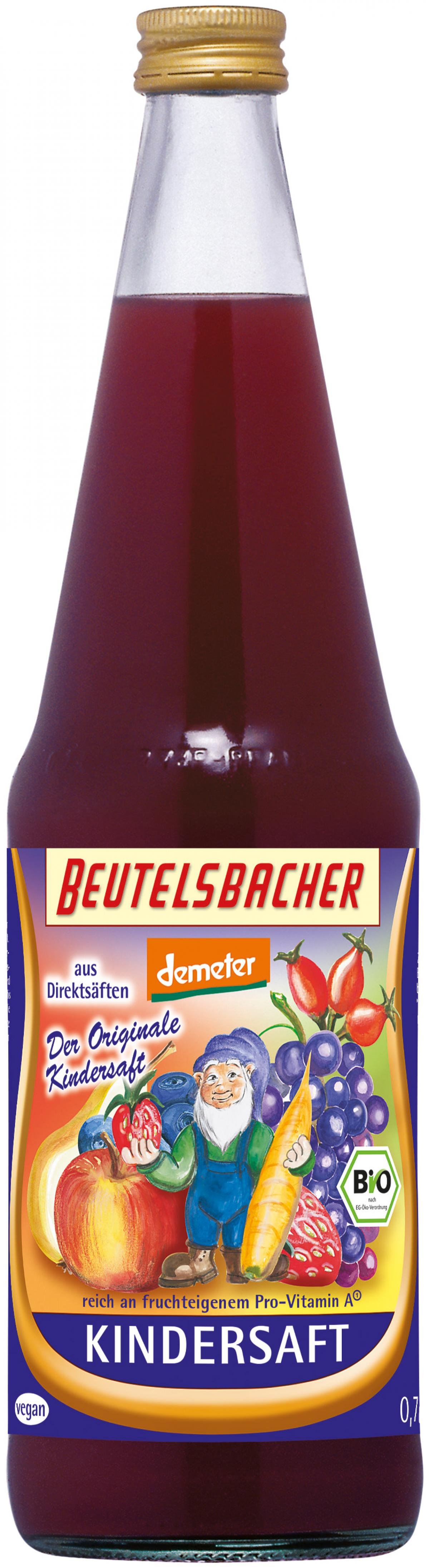 Das originale Rezept des Beutelsbacher Kindersaftes wurde zusammen mit dem geisteswissenschaftlich orientierten Arbeitskreis für Ernährungsforschung, Bad Vilbel, entwickelt. Dabei legten wir besonderes Augenmerk auf möglichst verschiedenartige Fruchtformen von der Karotte in der Erde über die kleinen Heidelbeeren und Erdbeeren zum Hagebuttenstrauch und über die Weinrebe bis zu den hochaufstrebenden Apfel- und Birnbäumen. Für die Fruchtauswahl war äußerst wichtig: einheimische Früchte mit unterschiedlichen Erntezeitpunkten und Reifeperioden einzusetzen, um die gesamte Zeitdauer der Fruchtbarkeit unserer Breitengrade im Kindersaft abzubilden - im Sinne einer ganzheitlichen Entwicklung.